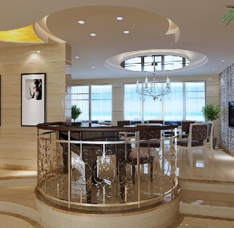 一般除餐桌、餐椅和燈具外,可以根據(jù)主人的愛好和空間大小搭配酒柜、展示柜、酒車等,再配以適當(dāng)?shù)木G色植物和裝飾畫,墻面的色調(diào)盡量用淡暖色,以增進食欲。燈具選擇可以不受空間高低的限制,選擇主人喜歡的吊燈。