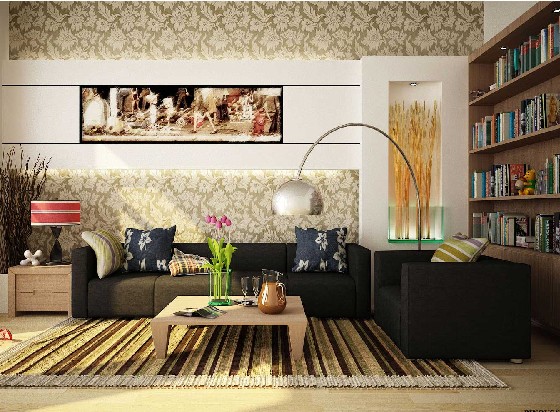 1.空間—空間功能的區(qū)域劃分要合理,且要協(xié)調(diào)統(tǒng)一,功能區(qū)的過(guò)渡要緩和,不要給人突兀的感覺(jué)?,F(xiàn)代客廳一般被劃分為就餐區(qū)、會(huì)客區(qū)和學(xué)習(xí)區(qū)(或休閑區(qū))等。就餐區(qū)即過(guò)去的餐廳,因此應(yīng)該盡量靠近廚房,方便就餐和上菜,如果有必要,還可以用小屏風(fēng)后人造矮墻讓他與其他功能區(qū)分開(kāi);會(huì)客區(qū)的通道要簡(jiǎn)潔,空間要寬敞,光線要明亮,能夠達(dá)到溫馨、具有親和力是主旨;學(xué)習(xí)區(qū)(休閑區(qū))應(yīng)比較安靜,靠近餐廳某一隅,區(qū)域不必太大,但一定要給人舒適的感覺(jué)。盡管在各大功能區(qū)域的分隔上,可以沒(méi)有明顯的區(qū)分物,但是在視覺(jué)效果上,還是要給人一個(gè)較為明朗的印象,這可以通過(guò)空間吊頂?shù)淖呦?、裝飾品的擺設(shè)等進(jìn)行區(qū)分。但是要注意整個(gè)客廳空間的和諧統(tǒng)一,即各個(gè)功能區(qū)域的裝飾格調(diào)要與全區(qū)的基調(diào)一致,以體現(xiàn)總體的協(xié)調(diào)性。