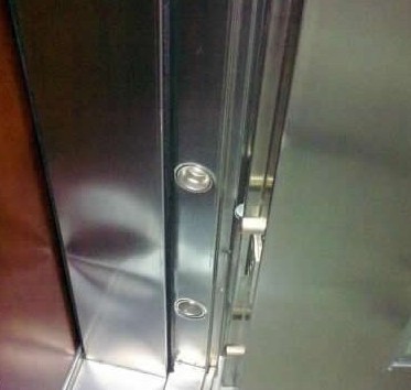 1. 看門框的平整度!以圖為例,由于門框的鋼質(zhì)不夠硬,導(dǎo)致變形。既然是鋼門,但是居然變形了,不用多說,大家也知道好不好了。