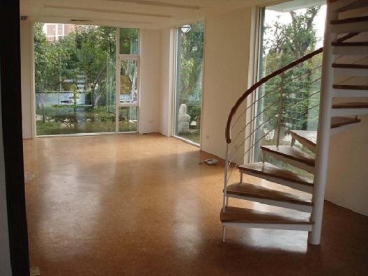 筆者觀察到,軟木地板的生產(chǎn)過程十分嚴(yán)謹(jǐn),軟木樹皮在被加工成地板之前經(jīng)歷了一系列歷練過程:打碎、篩選、過濾、攪拌、熱壓、固化、飾面等,其中熱壓成型的工序,令顆粒狀的軟木原料形成了一個穩(wěn)定均衡的整體,盡管軟木天生具有微小氣囊,但經(jīng)過處理的軟木已經(jīng)成為純凈的軟木顆粒,之后以一種人工熱壓的方式重新排列在一起形成新的結(jié)構(gòu)系統(tǒng),對于外部來說,它是完全致密而封閉的,不會滲油滲水,達(dá)到一定含水率的軟木地板不容易受潮變形,更不會藏污納垢。另外,經(jīng)過表面特殊處理的軟木地板還可以用于廚房衛(wèi)生間等潮濕空間。