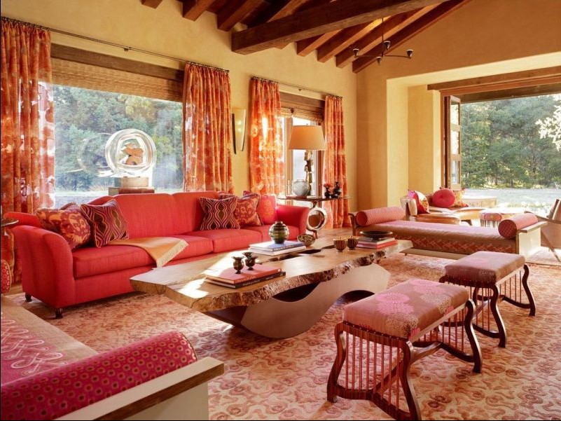 客廳整體呈現(xiàn)對(duì)稱的造型,但在細(xì)節(jié)處體現(xiàn)著不對(duì)稱的美感。濃烈的色彩,張揚(yáng)情緒,濃烈而溫暖。