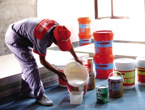 這種涂料的主要成分為硅溶膠,這種涂料外觀平滑無(wú)光,具有 消光裝飾作用,涂層耐水性、耐堿性、耐洗刷性好。適用于廚房、衛(wèi) 生間、走廊,噴涂施工,最低施工溫度為SC。