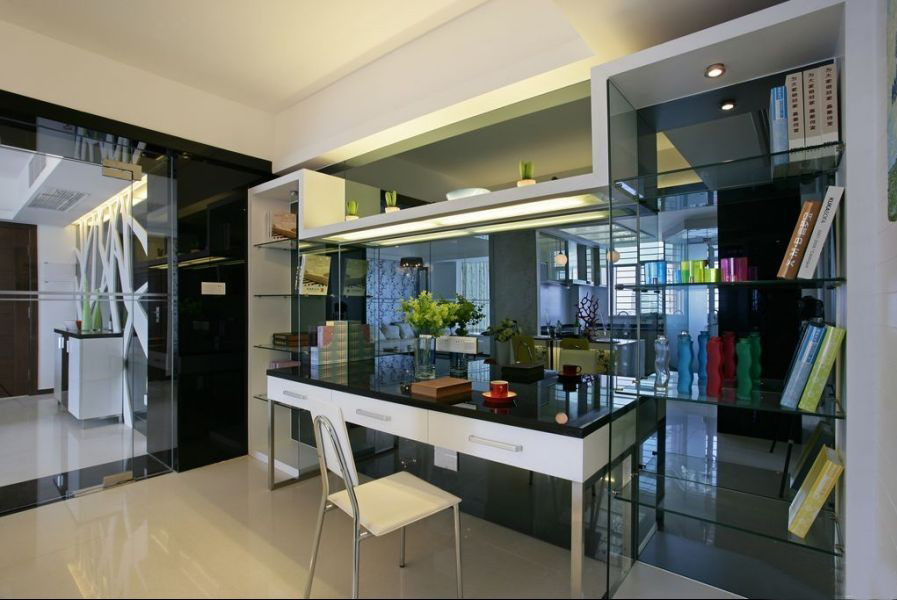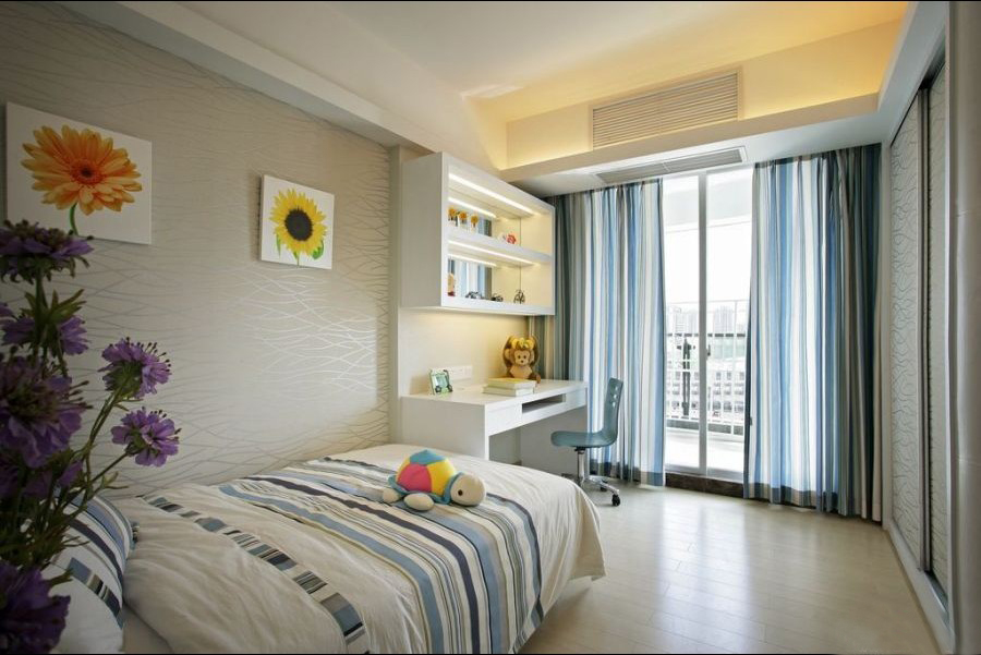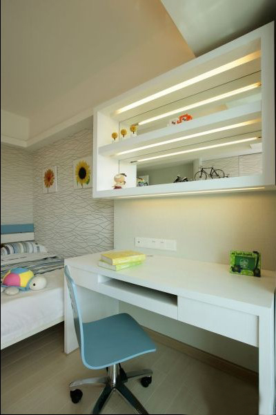在典型的現(xiàn)代風(fēng)格設(shè)計(jì)中,裝飾的主題往往是窗外的風(fēng)景,或是一墻時(shí)尚的壁紙,或是一套漂亮的椅子,或是個(gè)性十足的飾品擺件。這樣的書桌,簡(jiǎn)潔方便且非常實(shí)用,擺放在臥室里非常適宜。