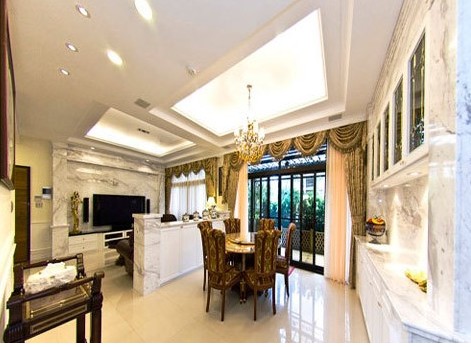 一般別墅的建筑風(fēng)格都是以歐式為主,而不少業(yè)主又想把原有的中式紅木家具搬進(jìn)別墅,如果室內(nèi)裝飾以紅木家具為出發(fā)點(diǎn)來進(jìn)行設(shè)計(jì),就與建筑風(fēng)格產(chǎn)生了矛盾。遇到這樣的情況,我一般進(jìn)行這樣兩種處理:1、勸說業(yè)主將中式紅木家具賣掉或轉(zhuǎn)贈(zèng)給父母、子女、親友,另外選購(gòu)新的歐式家具,使室內(nèi)設(shè)計(jì)能很從容地與歐式建筑風(fēng)格相統(tǒng)一;2、將一個(gè)層面或一個(gè)層面中的一兩間房,作另類設(shè)計(jì)(中式設(shè)計(jì)),以滿足業(yè)主保留中式紅木家具的愿望。這一設(shè)計(jì)的考慮,如同在三房二廳的空間中,安排一間日本和室的布置一樣。
