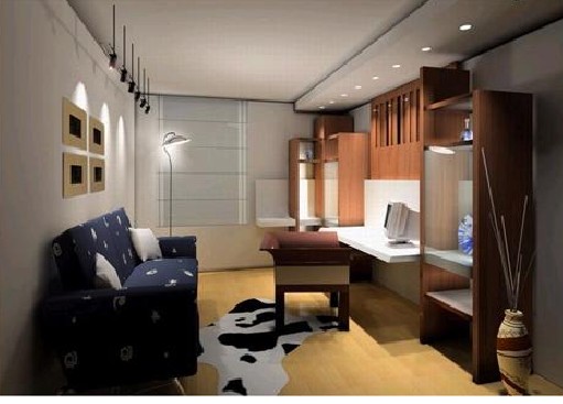 為了直接利用自然光源,我們可以把工作區(qū)安排在窗前,如果是朝南的房間,光線會比較強(qiáng)烈,我們要么用窗簾調(diào)節(jié),要么把工作區(qū)側(cè)放或靠后。但是我們應(yīng)該考慮到電腦屏幕的反光問題,而把位置安排在窗戶兩側(cè),離窗稍遠(yuǎn)的墻邊。不過對于遠(yuǎn)離窗口的空間,由于光線比較暗淡了,我們最好用來安排輔助區(qū)的活動。