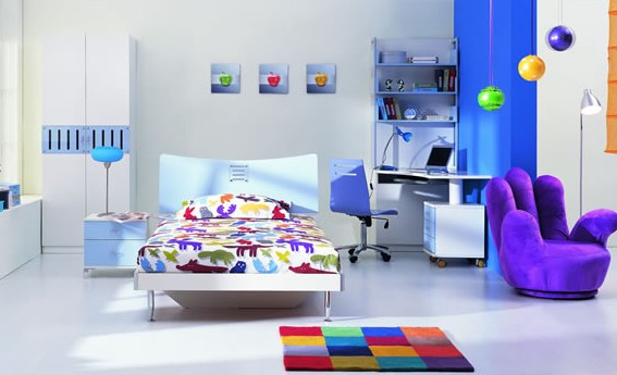 在設(shè)計(jì)兒童房時(shí),應(yīng)避免單調(diào)的純白色調(diào),可以根據(jù)孩子的年齡、喜好、性別設(shè)計(jì)得個(gè)性化一些,增加趣味性。不同的色彩可以刺激兒童的視覺神經(jīng),開發(fā)兒童的學(xué)習(xí)能力。童房的色彩和孩子的性別有關(guān)。女孩子的房間可以選用淺粉色為主色調(diào),男孩子的房間可以是淺藍(lán)或淺綠為主,這可以幫助男孩“更像男孩”,或者女孩“更像女孩”。