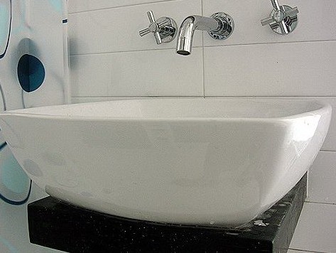 有沿臺(tái)式洗臉盆和無沿臺(tái)式洗臉盆適用于空間較大的裝飾較高檔的衛(wèi)生間使用,臺(tái)面可采用大理石或花崗巖材料。