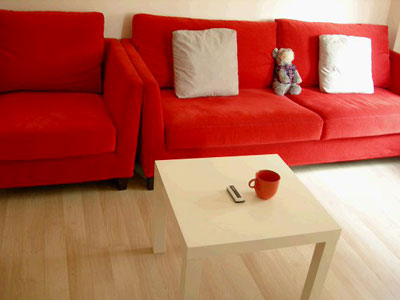 從門口張望進(jìn)來(lái),客廳只有三米左右的深度,所以買了靠背極薄的沙發(fā)