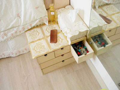 房子的主體已經(jīng)都發(fā)了,下面就是細(xì)節(jié)了……下面是梳妝盒和臥室里窗前的平臺(tái),下面的柜子里我放書,因?yàn)闀苓€沒(méi)做……
