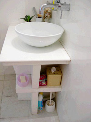 洗手間的臺(tái)盆,下面的空間充分利用,做成儲(chǔ)物柜