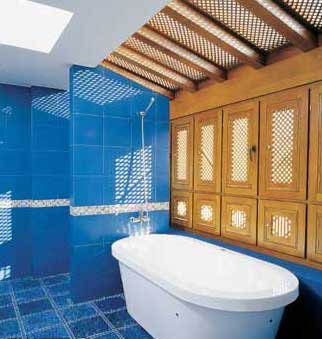 嵌入式浴盆:有些朋友在裝潢衛(wèi)生間的時候,喜歡在衛(wèi)生間里砌一個盆臺,盆臺高出地面一兩個臺階,然后將浴盆嵌在盆臺里,說老實話,這樣的格局非常漂亮,我本人也很喜歡。但還是有一個小小的建議要給您,最好不要在臥室所套的衛(wèi)生間里采用這種格局,因為根據(jù)中國傳統(tǒng)家相學(xué)的原理,衛(wèi)生間的地面不能高于臥室的地面,尤其是浴盆的位置不能有一種高高在上的感覺,五行學(xué)說認(rèn)為,水是向下流的,屬潤下格,長期住在被水滋潤的臥室里,容易發(fā)生內(nèi)分泌系統(tǒng)的疾病。如果您非常喜歡這樣的嵌入式浴盆,可以將它安置在另一間離開臥室較遠(yuǎn)的衛(wèi)生間內(nèi)。