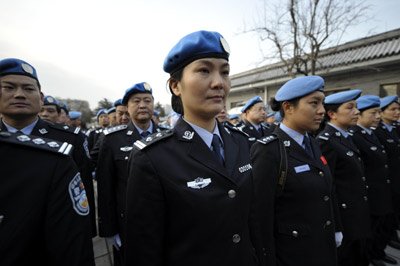 今天,一隊頭戴藍色貝雷帽、身著制服的維和警察也來到殯儀館,為戰(zhàn)友送行。中國首批赴海地執(zhí)行維和任務(wù)的維和警察防暴隊隊員邵偉民動情的說,遇難戰(zhàn)友為維護和平作出了自己的貢獻,是“全體維和警察的驕傲”!