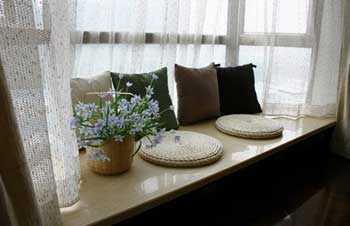 想被陽光照醒或享受星光的人士不妨試試。如果飄窗頗大,有兩三米長,一米寬的話,就可以把飄窗設(shè)計(jì)成一張小小的單人床!保留原有的大理石臺面,在采光玻璃(大多飄窗是三面采光)上掛上羅馬簾或普通垂簾,再在飄窗與臥室之間多加一道窗簾。不用的時(shí)候整個窗戶造型是浪漫的宮廷式垂簾,輕輕拉開,就是睡美人之床了。