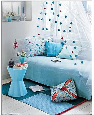 3、在白色調(diào)為主的房間中加些藍(lán)色,再現(xiàn)浪漫溫情