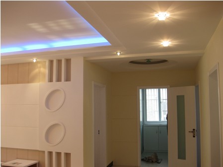 藻井式吊頂這類吊頂?shù)那疤崾?,你的房間必須有一定的高度(高于2.85m),且房間較大。它的式樣是在房間的四周進(jìn)行局部吊頂,可設(shè)計成一層或兩層,裝修后的效果有增加空間高度的感覺,還可以改變室內(nèi)的燈光照明效果。