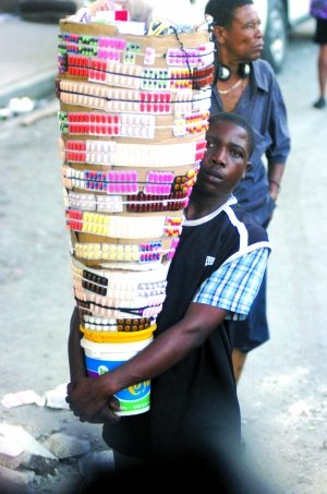 1月20日,太子港,一名海地居民在街頭賣藥。新華社發(fā)(烏巴爾多·岡薩雷斯攝)