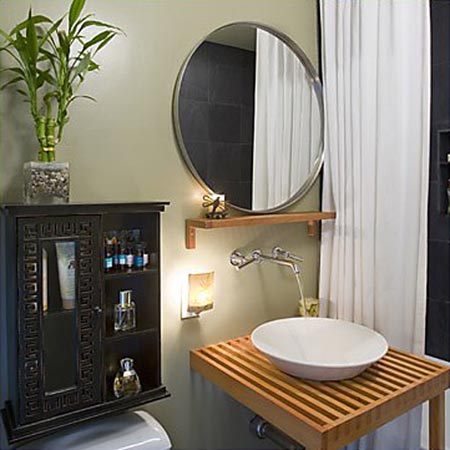浴室面積大,擁有成套的潔具,但缺乏變化和生動(dòng)感。配合浴缸的材質(zhì),選擇一高一矮、粗細(xì)搭配的花盆,讓浴室中的涼爽意味更加透徹。植株的枝干高挑、枝葉蔥蘢,帶有一些東南亞的熱帶色彩,與藤木質(zhì)地的花盆搭配在一起,營(yíng)造出渾然天成的效果。變身美化主角可選擇落地式大型綠植+層架盆花。