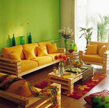 沙發(fā)后:放枝梅花或桃花