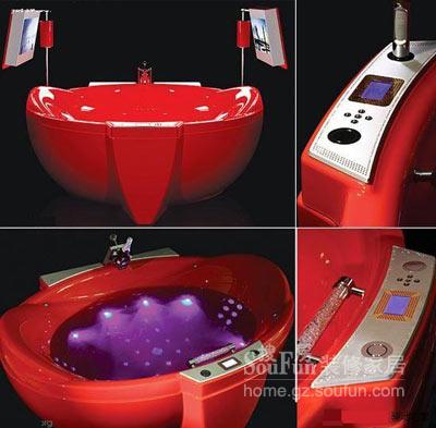 大多數(shù)奢華的東西都是用來顯示富貴,而不是真正多有用的,比如這個超級奢華的高科技浴缸。這個Red Diamond浴缸兩側(cè)各自掛有一個HDTV,使用集成的GSM模塊來無線操作(也有打電話的功能),帶有一個施華洛世奇水晶鑲邊的香檳酒座,而且整個浴缸是鍍金的。