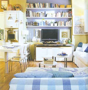 緊湊的家具擺設(shè)、可伸縮家具的選擇、功能區(qū)域的劃分,讓小屋顯得井然有序。與心愛的人共住如此精致的小屋,相信生活早已變成無形的樂趣。而聰明的讀者,也將通過這間小屋學(xué)到許多節(jié)省空間、擴(kuò)大空間使用功能的有效辦法。