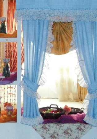 如果客廳家具是以板式家具為主,宜選用質(zhì)地輕薄、色澤亮麗明快的印花布窗簾。如果你喜歡春天嬉戲于百花中的感覺(jué),不妨試一試今年比較流行的ART DECO 裝飾風(fēng)格,選用一款色彩淡雅的團(tuán)花窗簾來(lái)迎接春天明媚的陽(yáng)光。