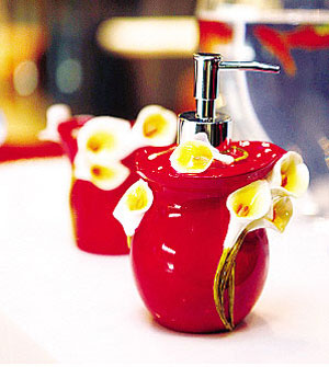 制造陶瓷一向是中國人的拿手技術(shù),這個乳液瓶和牙刷架采用了整體燒制的手法,花朵造型逼真,再搭配接近透明的材質(zhì),賦予衛(wèi)浴一種別樣的美感。需要注意的是,陶瓷類產(chǎn)品屬于易碎品,在使用時要非常小心,防止割傷或劃傷皮膚。