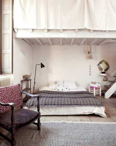 概要: 走進(jìn)這套小公寓,感覺就像走進(jìn)藝術(shù)家的油畫里的。處處彌漫著浪漫風(fēng)情,讓人情不自禁的沉浸其中?! Ρ谏峡此齐s亂無章的裝飾畫擺設(shè),卻是同整個(gè)設(shè)計(jì)格調(diào)高度統(tǒng)一了?! ≈髋P里的簡(jiǎn)潔設(shè)計(jì),更好的讓陽光灑進(jìn)來?! ≈苯舆B接屋頂?shù)臅?,擺滿了書籍?! ∨P室里的采光充分利用屋外的陽光,在寒冷的冬季亦感受到暖暖的陽光。