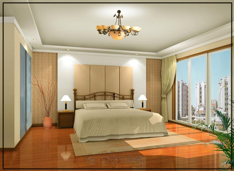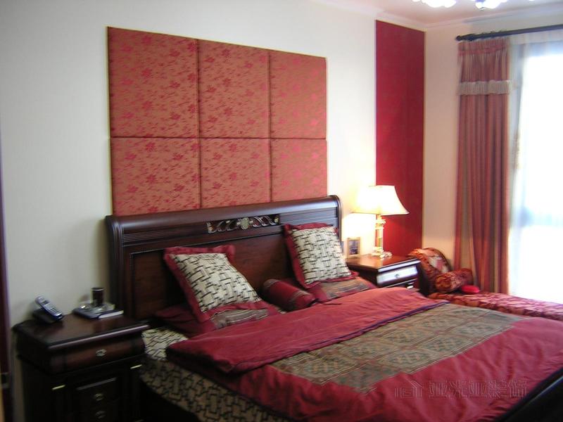 臥室中床頭胡桃木在紅色壁紙的襯托下,構成了臥室的主題——沉穩(wěn)與和諧。羊皮床頭燈和室外透進的光線相呼應,造就了可變換的光環(huán)境,靠近窗邊的貴妃榻營造出溫馨高雅而又浪漫的氣息。試想在這里揉揉發(fā)酸的雙眼,把自己仍進軟軟的大床,朦朧中墻壁上光與影奏響的和諧旋律,是否會讓人在半夢半醒間飄飄燃起來?大腦神經(jīng)此時可以拒絕大千世界一切的繁蕪叢雜,遠離精神領域所有的煩惱壓抑,只讓心靈在次深呼吸。在使用功能上,設計師為主臥設立了獨有的大更衣間,使主人在使用上更方便、更具私密性