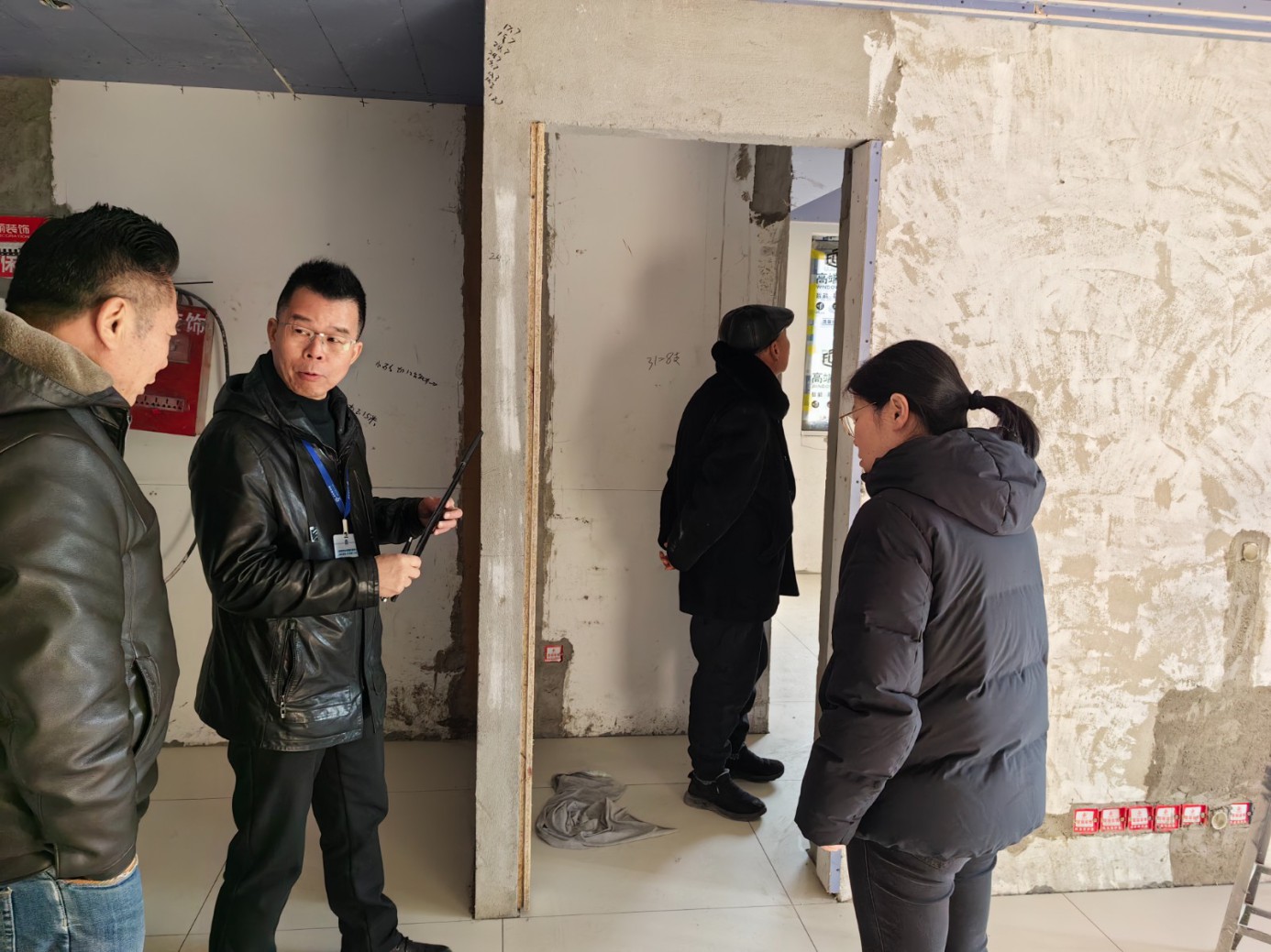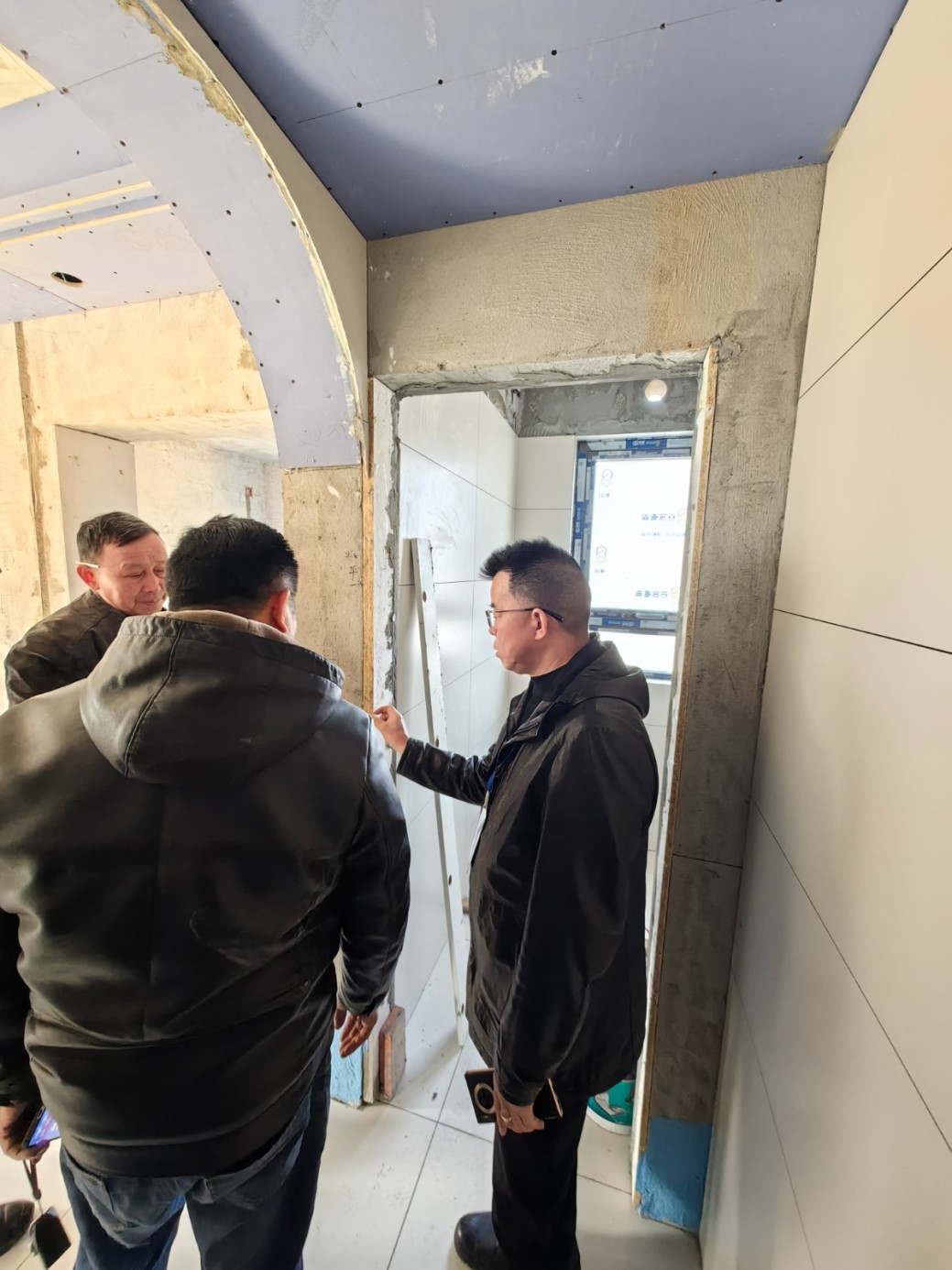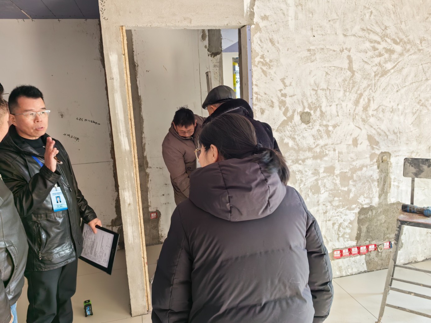裝潢網(wǎng)邱老師跟楊老師去工地檢查,工地正是泥木驗收階段,經(jīng)老師們查驗 ,摳細節(jié) ,查質(zhì)量,會員企業(yè)積極配合 ,給業(yè)主一個完整的家。