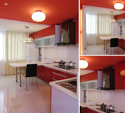 廚柜選用大氣時(shí)尚的紅色,有喜慶溫暖的感覺(jué),里面還擺放一個(gè)小小的餐桌,方便實(shí)用。