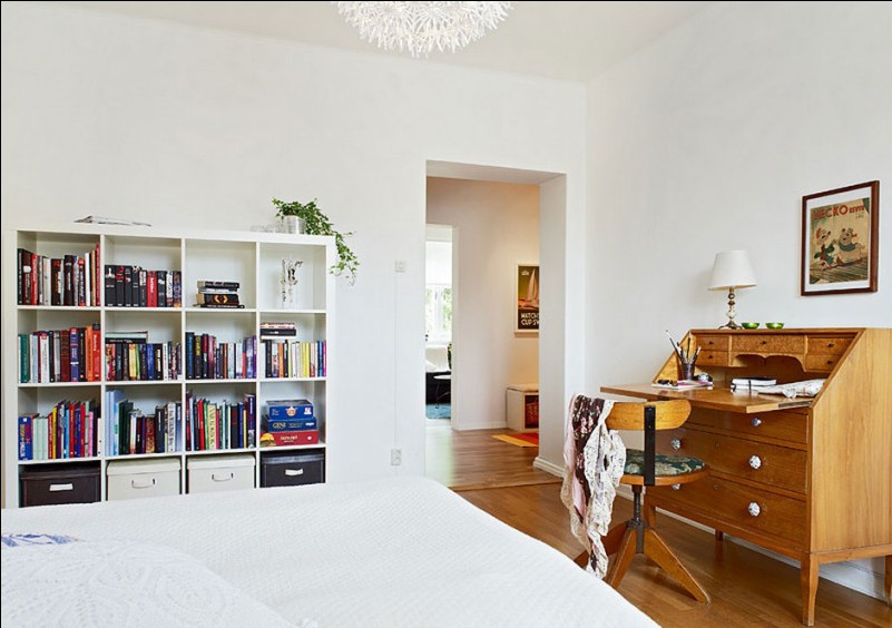 如果說餐廳客廳廚房都是現(xiàn)代感十足的現(xiàn)代歐式風(fēng)格,那么從臥室的各個細(xì)節(jié)又能看出不同。床另一頭的寫字臺旁搭配的椅子,帶有典型的20世紀(jì)50年代風(fēng)格。一點(diǎn)點(diǎn)典雅的風(fēng)格顯現(xiàn)。