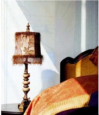 八,紗帳營(yíng)造的浪漫。如果你覺(jué)得床頭柜上放臺(tái)燈、蠟燭、鮮花,以及在墻上掛畫(huà)之類(lèi)的床頭裝飾基礎(chǔ)法則都不夠浪漫,那么,試試看為你的床頭披上一襲白紗。把白色通花紗帳的頂部在天花板上固定好,再將紗幔的大部分塞到床靠后面,只留一小部分自然下垂于床頭,調(diào)整一下紗帳的形狀,讓床頭半隱半現(xiàn)就可以了。