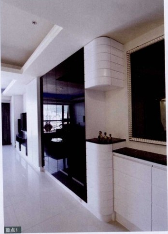 概要:   為了滿足戶主大量地收納物件需求,設(shè)計(jì)師沿壁面規(guī)劃了大量的隱藏式收納柜。以黑色與白色為空間主題,柜體以白色為主,輔以各種黑色建材,以提升空間質(zhì)感,而充滿前衛(wèi)感的黑色烤漆與黑色鏡面則帶來時(shí)尚感,展現(xiàn)出低調(diào)奢華的氛圍。此外,黑白之中并適度地穿插少時(shí)的銀色或透明色,如入門玄關(guān)鞋柜上的玄關(guān)穿衣鏡,配以造型利落的銀色鏡框,又如餐廳與廚房之間采用玻璃拉門區(qū)隔。