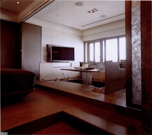 能攬入難得的自然景觀,設(shè)計(jì)師將空間重新調(diào)整,把地板墊高作為多功能室,墊高的地板設(shè)計(jì)為倚窗的木作沙發(fā)座,讓人可以坐著欣賞窗處美景。同時(shí)以拉門與客房連接,讓空間使用更具彈性。家具選擇及配置也是設(shè)計(jì)的重點(diǎn),設(shè)計(jì)師依空間比便量身定制家具,并搭配特別挑選的燈飾,讓空間更具風(fēng)格。
