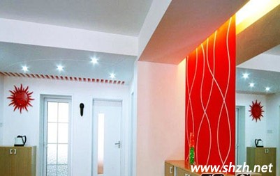 此圖的玄關(guān)裝修并沒有使用大面的玻璃然后加上一些彩繪點飾。而是采用單一的紫色彩繪玻璃連成串當作玄關(guān)。與客廳的簡約裝修風格一致。但是采用紫色室內(nèi)彌漫著永恒的愛的真情浪漫。