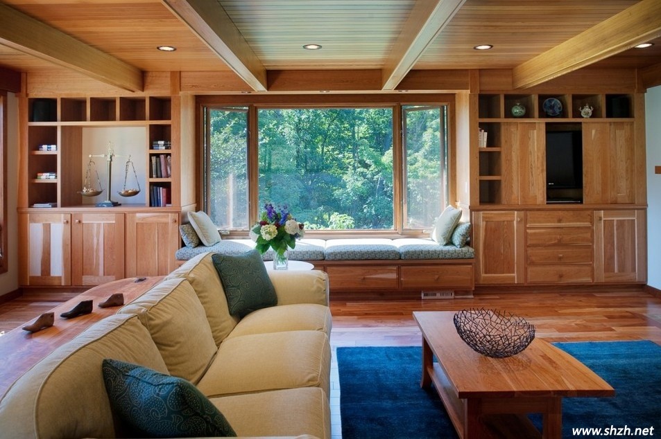 實木質飄窗給人永遠是溫暖的感覺,裝飾在別墅的飄窗上,給人的就是回歸自然的感覺,不同顏色的,不同質地的實木質給人帶來的自然感受也是不同的。