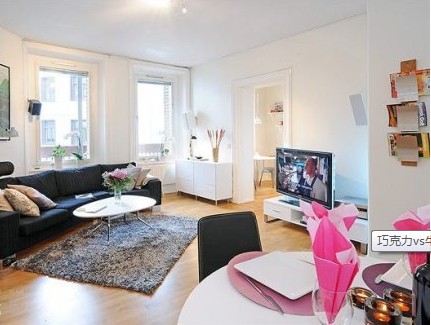 很多人看到這款裝飾都會很自然的想起北歐風(fēng)格,圓弧帶有扇形的黑色布藝沙發(fā),在牛奶味十足的客廳里成為了亮眼的明星,深沉的顏色搭配黑灰相間的豎條紋顯得簡約又大方。沙發(fā)前的地毯點點斑斕,黑白兩色錯亂相間,就像奶牛身上的圖紋。簡潔是北歐的代名詞。白色橢圓形的茶幾上擺放上一個花瓶,可以讓客廳增添一絲浪漫的氣氛,也可以和墻上掛著的風(fēng)景畫作個呼應(yīng)。