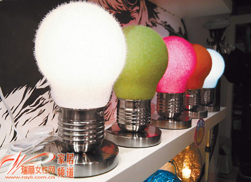 5款不同顏色的毛毛燈泡形臺燈,輕觸式開關(guān)更可調(diào)校光暗。售價288元
