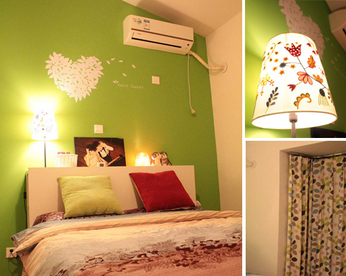 進(jìn)入的第一個(gè)房間是臥室,這個(gè)綠色背景墻臥室,充滿童真童趣的就寢空間。生命力依舊。