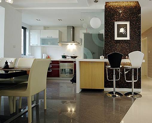提醒:玻璃墻的不足之處是不能像輕體墻一樣在上面掛些東西,只能做隔斷和裝飾用,但在通透感上比輕體墻要好很多。但玻璃需要經(jīng)常清理,否則因油煙較大,時(shí)間長了污物積累在一起不好清洗。如果玻璃墻的面積過大,清洗起來會(huì)更加麻煩?!?/p>