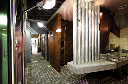 以華麗金屬色調(diào),搭配鮮紅的休憩椅,大片珠簾環(huán)繞中島化妝臺區(qū)域,水晶燈及金色雕框鏡子環(huán)繞其間,呈現(xiàn)金碧輝煌的雍容氣度。值得一提的是,其中一間廁所,針對仕女特別設置自動沖水的下身盆,如此貼心的設計,比五星級還五星級,讓如廁也是一種人生的享受!