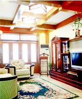 寬敞的客廳以楓木做成的屏風(fēng)隔斷,點(diǎn)綴一幅收藏的精致掛畫,在視覺上將客廳與餐廳分隔,凝聚了視覺的焦點(diǎn)。深色的地板、淺色的配飾,顯示出室內(nèi)線條的簡單,空間明亮,突出了裝飾文化的美感。