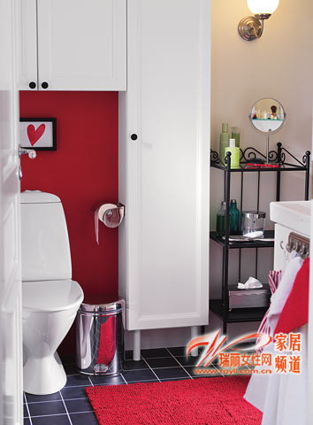 面盆下面的空間大有作為,是片“心有多大就有多大”的天地。放個(gè)帶輪滑的小柜子,收納平日里不常用的東西,既美觀又方便,造型還任你擺。面盆一側(cè)的兩個(gè)四面鏤空的豎架,簡(jiǎn)單大方,散發(fā)著青春的氣息。
