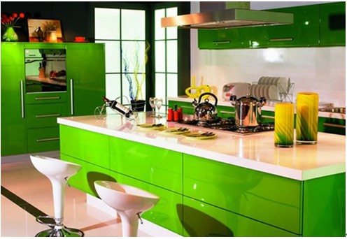 清新的明黃、嫩嫩的綠意、都無(wú)盡的透露著春意的到來(lái),給生命已無(wú)數(shù)的期許。就讓充滿(mǎn)生命力的鮮活綠色走進(jìn)人們的廚房,豐富視覺(jué)的想象力。不同程度的綠色空間主題,可讓廚房空間氛圍鮮活跳躍??臻g色彩搭配上可選用暗藍(lán)色的涂料,在配合草綠色的櫥柜及同色系的餐具,可使整個(gè)空間輕松氛圍與穩(wěn)重氣息很好地結(jié)合起來(lái),營(yíng)造出一種輕松、明快的廚房環(huán)境。