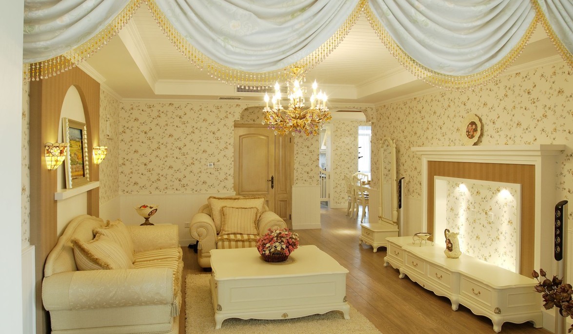 相比較而言,田園風格的壁紙比碎花沙發(fā)這類家具更得人心,也更顯大氣。