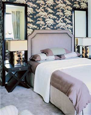 素雅與華美構(gòu)筑的溫馨氣氛,突出了簡約生活的精致與舒適;象征延年益壽的松柏圖案,在古樸中融入更多現(xiàn)代色彩,其大面積的夸張運用,并沒有與空間產(chǎn)生不和諧之感。