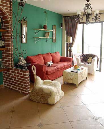 例如墻面為淺藍(lán)色,沙發(fā)則可選深藍(lán)色,抱枕則選用對(duì)比的橘色或沖突的紅色或是多色的圖樣。最好再加以一盆綠色喬木盆栽。大地色搭配永不失敗,因其來(lái)自自然界。