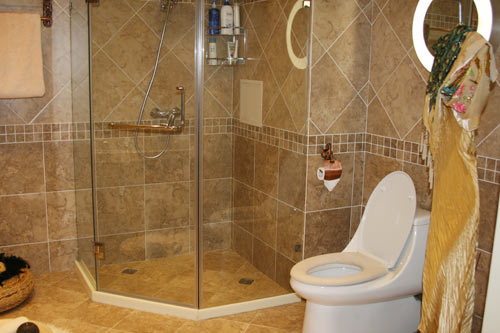 比如在衛(wèi)生間貼瓷磚的時候人們總希望做個腰線,這樣會比較好看??墒茄€往往是很貴的,其實開動腦筋,換種思路也能夠起到同樣的效果。可以把衛(wèi)生間進(jìn)門的主視角那個位置的瓷磚換成別的顏色,例如黑色、金色等,這樣也能突出整面墻的跳躍效果,還省下了不少錢。