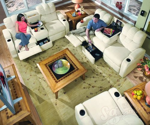 集功能性、舒適性與人性化于一身,沙發(fā)采用高科技材料,柔軟舒服,腿部可以翹起,達(dá)到人體最舒適的角度。沙發(fā)中間可以翻下小茶幾,內(nèi)嵌網(wǎng)絡(luò)設(shè)備,下面還有儲物箱。