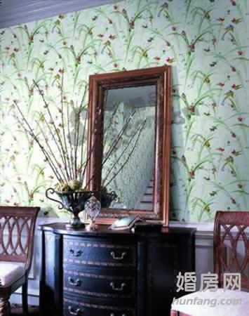 源自大自然的親切感躍然眼前,實木、石、藤、竹,這些材料都比較容易營造出質(zhì)樸的效果。利用壁紙的色彩、花紋和材質(zhì),模仿出自然界抽長枝的花草曲線,與真實的插花相搭配,給人清新質(zhì)樸的感覺。